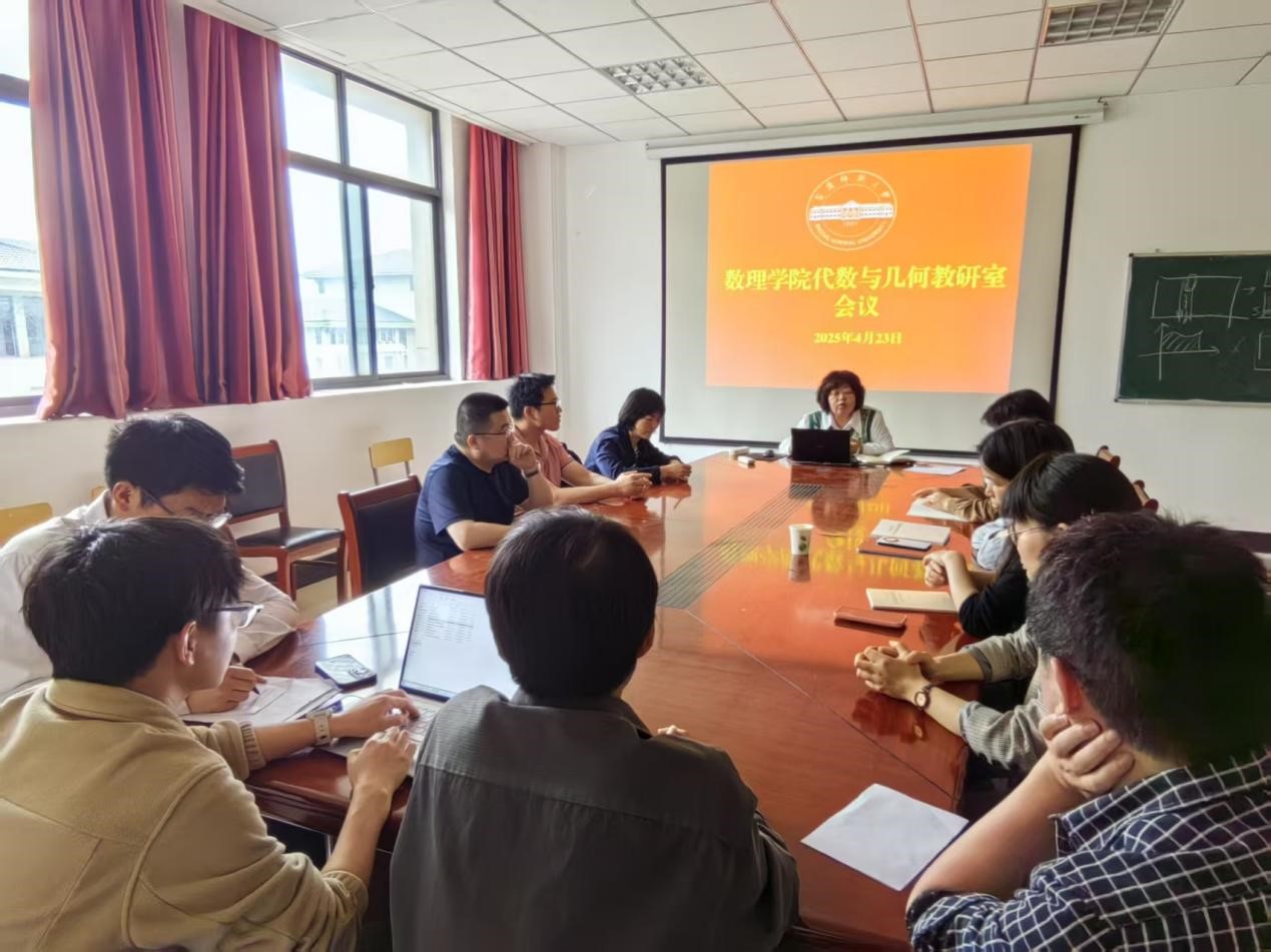为深入贯彻中央八项规定精神学习教育,落实习近平总书记关于作风建设的重要论述,深化师德师风建设,4月23日下午,代数与几何教研室开展“强化规矩意识,提升作风修养,优化教学成效”主题学习活动,结合期中教学检查工作,推动作风建设与教学实践深度融合。