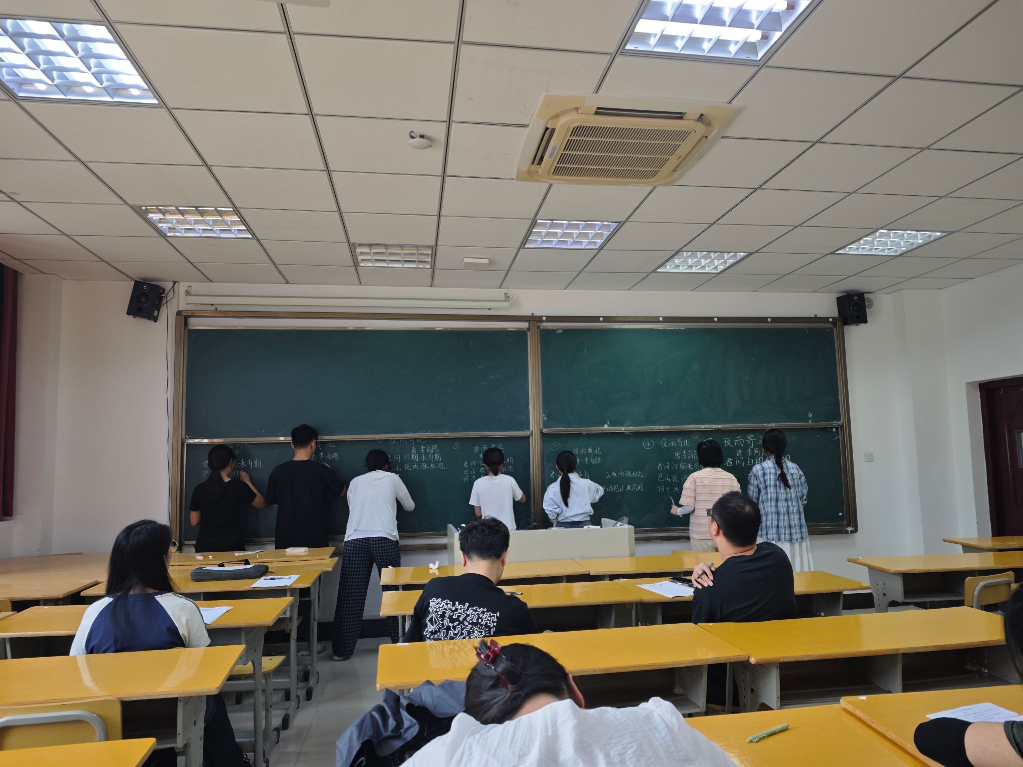 比赛阶段,选手们精心准备,积极展现自我。在学科教学组,选手们围绕学科知识点,设计新颖的教案,制作生动的课件,开展即席演讲,进行无生授课,展现出对教材的深刻理解与灵活运用能力;在三笔字比赛现场,选手们全神贯注,毛笔字笔力遒劲、硬笔字工整秀丽、粉笔字规范美观,一撇一捺间尽显扎实的书写功底;普通话组的选手们声情并茂地朗诵经典篇目,用标准的发音、流畅的表达和饱满的情感,传递出语言的魅力;教具组的选手们则创意独特,利用身边常见材料,制作出兼具实用性与趣味性的教学工具,为课堂教学增添新活力。