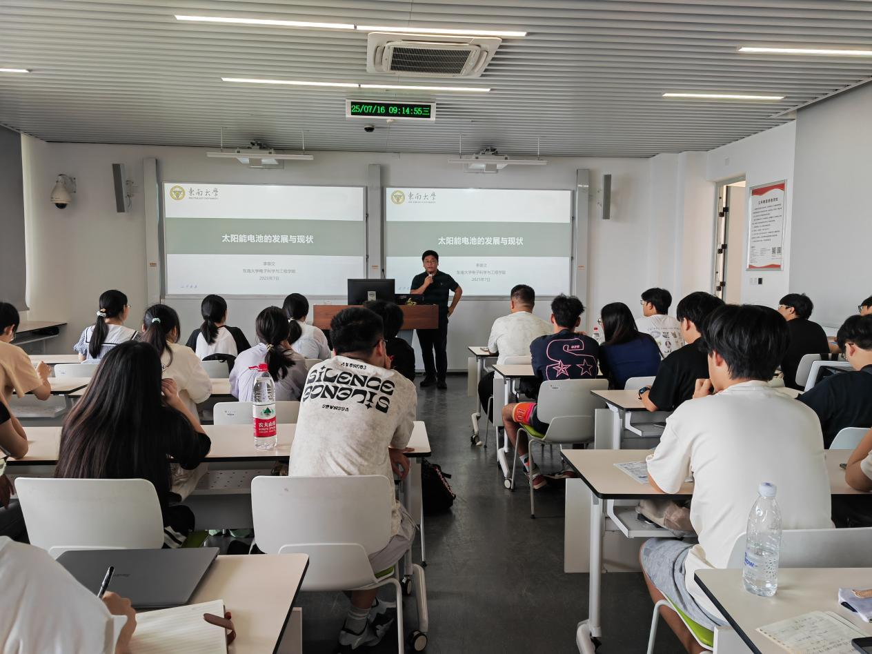 除了丰富的前沿课题研究,还安排了科研成长励志讲座和人生涯规划指导。国家杰出青年科学基金获得者李兵兵老师以“中国梦汽车梦青春梦——追寻新能源汽车梦与青春创新的交汇点”为题,分享了他的求学与研究经验,开拓了员工的视野,激发了同学们的学习热情。徐淑宏结合东南大学学科专业特色,给同学们开展了考研指导和生涯规划讲座,给同学们未来发展指明了方向。