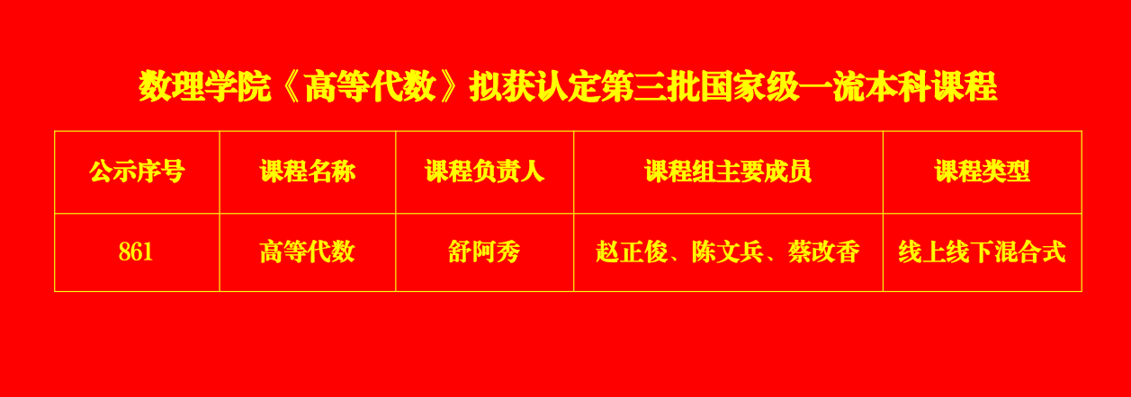 为做好第三批国家级一流课程申报工作,william威廉中文官网在前期建设基础上,高度重视,认真部署,积极组织申报,多次召开会议讨论,精心打磨申报材料,最终《高等代数》课程获得认定。
