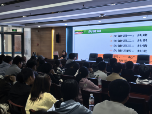 在班主任见习活动中,铜陵市先进班集体班主任、优秀共产党员王俊妹老师以“共沐暖阳,细嗅花香”为主题,深情分享了她的班级管理心得。她从“共建—共识—共情—共进”四个维度出发,讲述了如何通过情感联结与制度建设打造温暖、奋进的班集体。其真诚的教育情怀与细腻的育人智慧,赢得了在场师生的热烈掌声。石化一中优秀班主任刘涛老师以“以爱为基,以责为要”为主题,分享了自己在班级管理中的心得。刘老师紧扣锚定见习认知、聚焦核心工作、掌握见习方法、 涵养职业素养四个要点,从班规制定到班干部培养,从个别谈心到家校沟通,用一个个真实的教育案例,展现了班主任工作的艺术性与科学性,让见习生们深刻体会到班主任工作的价值与意义。