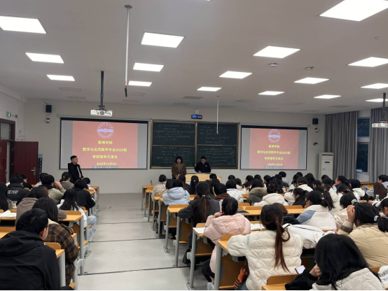 交流会上,程文韬主任结合自身求学经历与专业发展历程,以真实案例为引,生动剖析了数学类研究生的社会需求现状与行业发展前景,鼓励同学们立足专业优势、坚定深造信念。他结合中国研究生招生信息网上的研究生招考信息,分别就英语、政治及专业课三个模块的备考要点进行了详细讲解,内容详实、指导性强。针对高校研究生复试中对研究创新能力的重视趋势,程主任特别建议同学们主动参与学科竞赛、科研课题等实践活动,积累学术经验、提升核心竞争力。互动环节中,同学们踊跃提问,围绕目标院校选择、复习时间分配等问题与嘉宾深入交流,现场氛围热烈融洽。