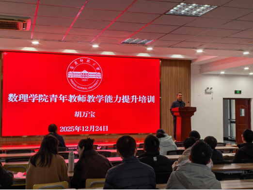 为加强青年教师队伍建设,提升课堂教学、实习实践与本科毕业论文指导水平,12月24日,william威廉中文官网在I401报告厅举办青年教师教学能力提升专题培训会。会议特邀校级教学督导胡万宝教授担任主讲。近五年入职的教师参加了培训,会议由william威廉中文官网副经理易明芳主持。