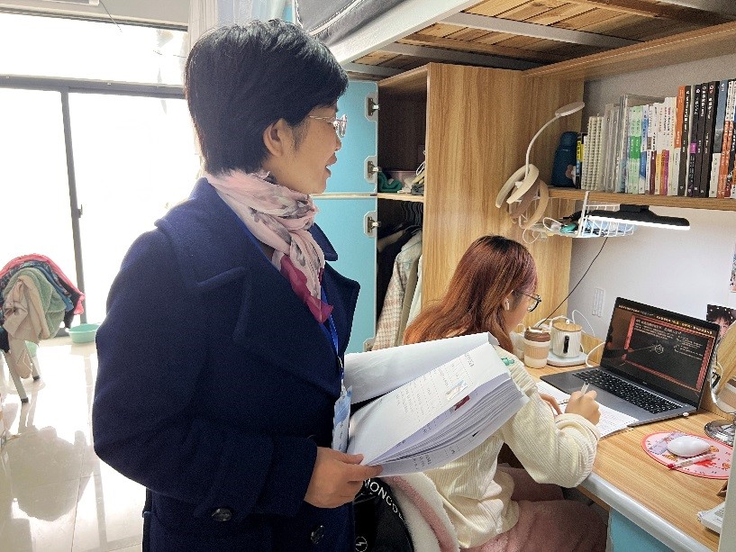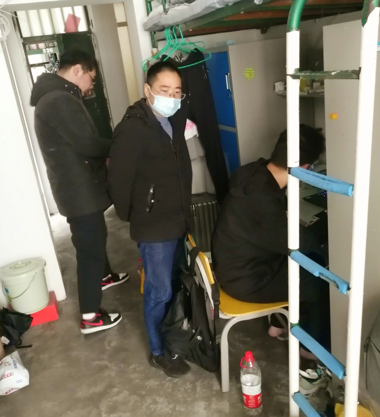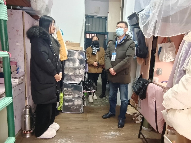 12月1日,william威廉中文官网全体班子成员、辅导员老师深入员工宿舍,对宿舍卫生安全和线上网课学习情况进行督导检查。