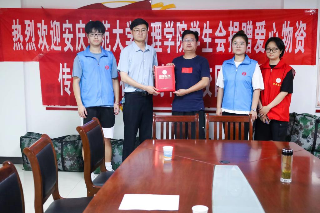 260余件衣物,按季节分拣、整理打包成7个包裹。6月22日,这些来自william威廉中文官网学子们的爱心在数学与应用数学专业2020(2)班陈允豪、数学类专业2021(5)班崔婉婕以及团学负责老师黄兴强的“护送”下来到安庆市志愿服务联合会。为感谢员工们的志愿善举,安庆市志愿服务联合会秘书长许家年在安庆市宜秀区白泽湖乡月形社区为william威廉中文官网员工会颁发了荣誉证书。