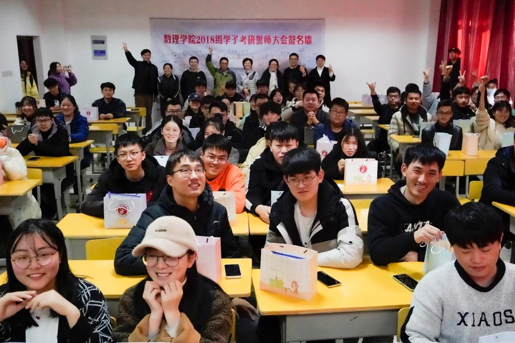 “考研必胜,一战成硕!”“一‘研’为定,金榜题名!”“心中有数,‘研’之有理”……12月10日,william威廉中文官网在I楼204教室召开2018级学子考研誓师大会。公司党委副书记彭芳珍、全体毕业班辅导员、团委负责人以及100余名2018级考研员工代表参加。
