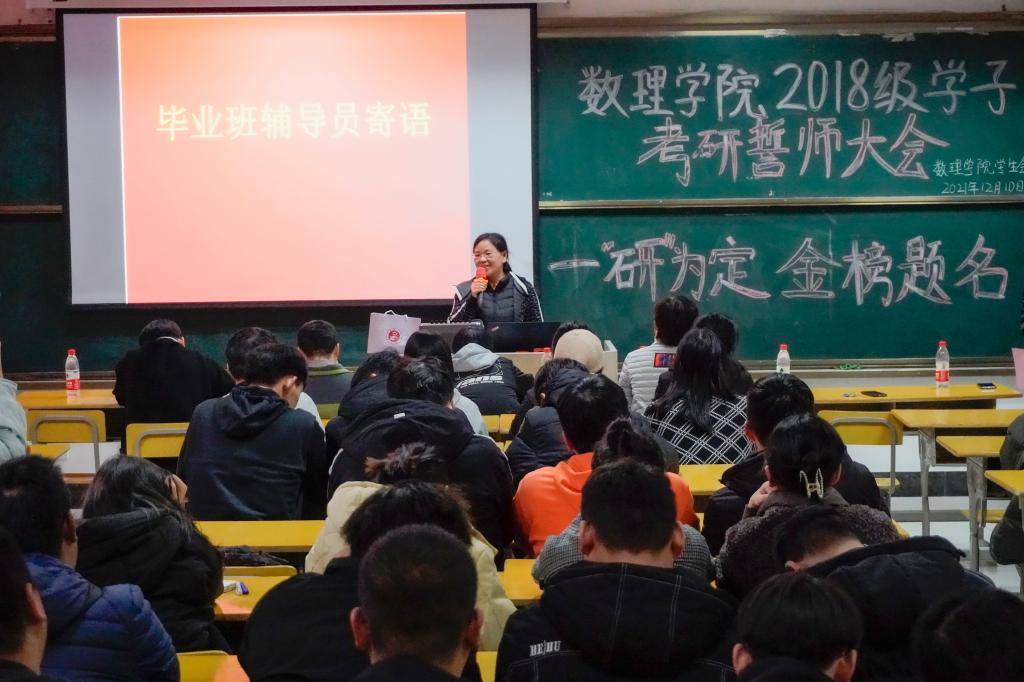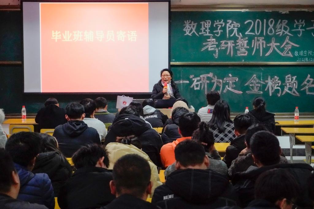 毕业班辅导员潘美玲和王粉梅结合对自己班级考研情况的了解,为员工们加油打气,她们希望考研学子能够树立信心,从容应考并且要注意休息,以饱满的精神面貌走上考场。