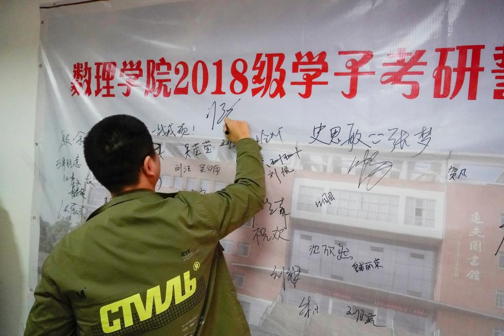 同学们纷纷在签名墙上签名,并写下自己的壮志豪言,希望能够一“研”为定,金榜题名。