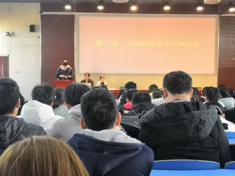 全体入团积极分子全体起立奏唱团歌,并一同观看了入团第一课。