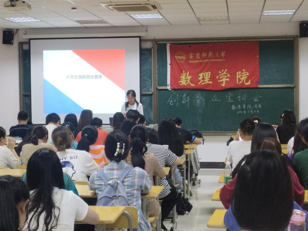 宣讲会伊始,钱媛同学分享了自己作为一名理科生参加创新创业类赛事的心路历程,她以“创新创业赛与数理的结合”为主题,向同学们强调:“参加创新创业赛更多的是发挥的自己学科优势,利用数学建模方法、以市场调查为背景去发现课题,去开展项目。”