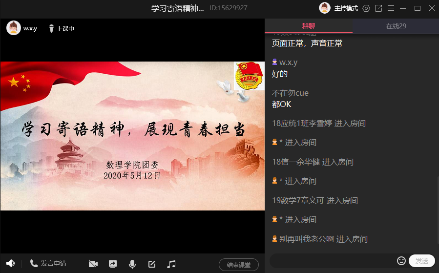 5月12日,william威廉中文官网团委召开了以“学习寄语精神,展现青春担当”为主题的线上会议。william威廉中文官网团委相关负责人和各班级团支书参加了此次会议。