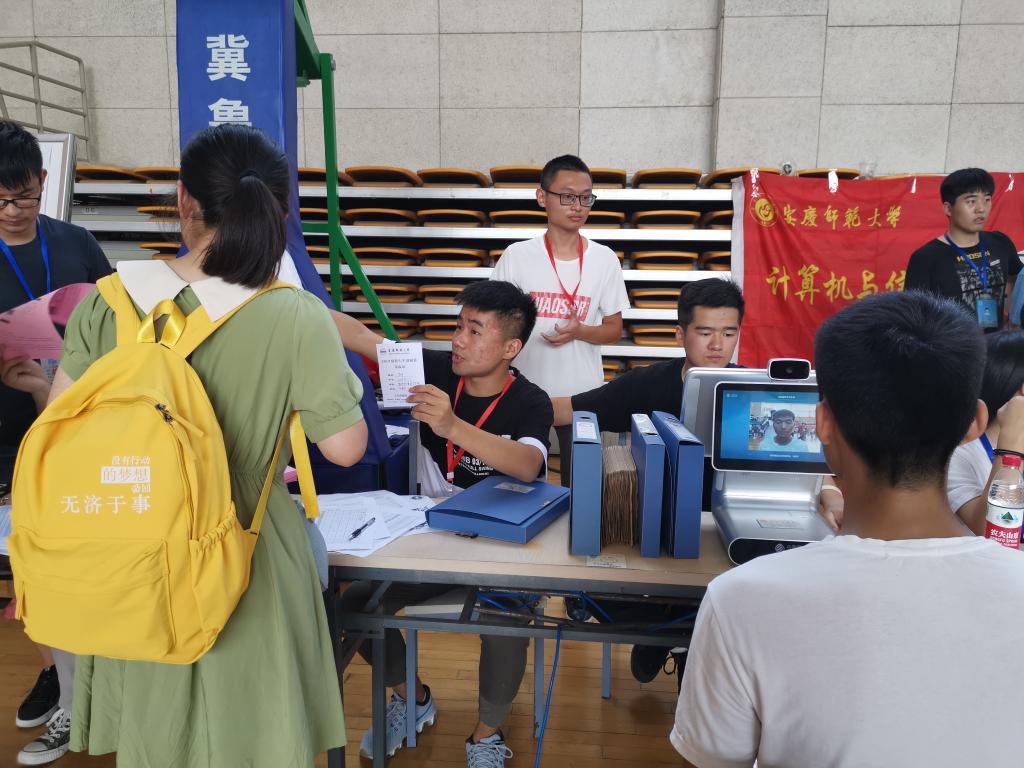 在接待点、报到处、宿舍楼,总能看到工作人员和新生们来往相伴的身影,学长学姐们热情周到的服务很快消除了新生初来乍到的陌生感。办理注册、核对证件、发放军训及床上用品,步骤有条不紊,现场秩序井然。今年迎新还增加了“诗词接龙”趣味游戏环节,成功接龙还可以获得小礼物,让2019级小萌新们感觉到了一丝惊喜和意外。