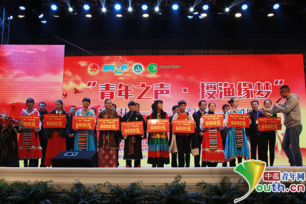 与会领导及嘉宾向十位员工代表捐赠“青年之声·授渔缘梦”助学金6000元。中国青年网记者 周小璐 摄