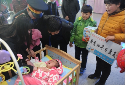 中国青年网太原1月10日电 (记者 王子瑞 杨志勇 陈颖) 1月9日,经过两个月的治疗,长治烧伤女婴小秀玲的病情得到控制,3次植皮手术后返乡疗养康复。得知小秀玲回家,共青团山西省委青年之声工作人员、太原南站工作人员、中国青年网记者及山西部分媒体记者前往迎接。14时27分,G613次列车停靠在太原南站16站台上,“重生”后的秀玲被家人抱下车。