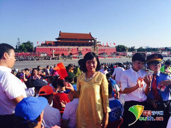 作为一名军人和文艺工作者,国家一级演员、全国政协委员、全国青联常委陈思思在2009年曾以青年演员的身份参与过建国60周年的庆祝活动,而这次纪念抗战胜利70周年,她和来自全国各地的代表一起作为嘉宾观礼阅兵。