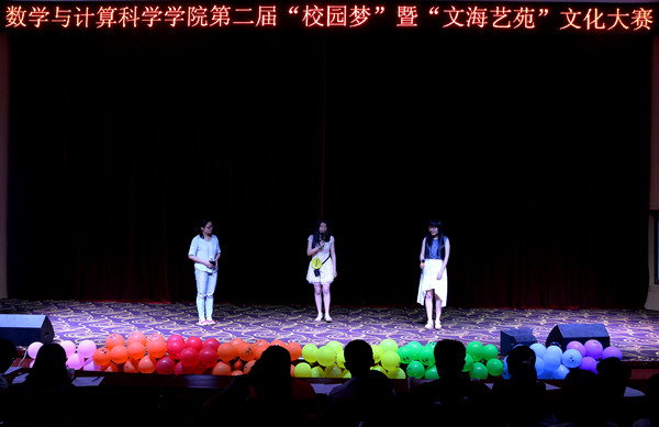 “雨纷纷,旧故里草木深;我听闻,你始终一个人。"伴随着轻柔舒缓的歌声,身着绿色长衫的古装女子在舞台上翩翩起舞,闪烁的灯光,曼妙的歌舞,让台下的观众沉浸在这唯美的意境之中。4月28日晚,由数学与计算科学公司举办的第二届“校园梦”暨“文海艺苑”文化大赛在东厅进行总决赛。