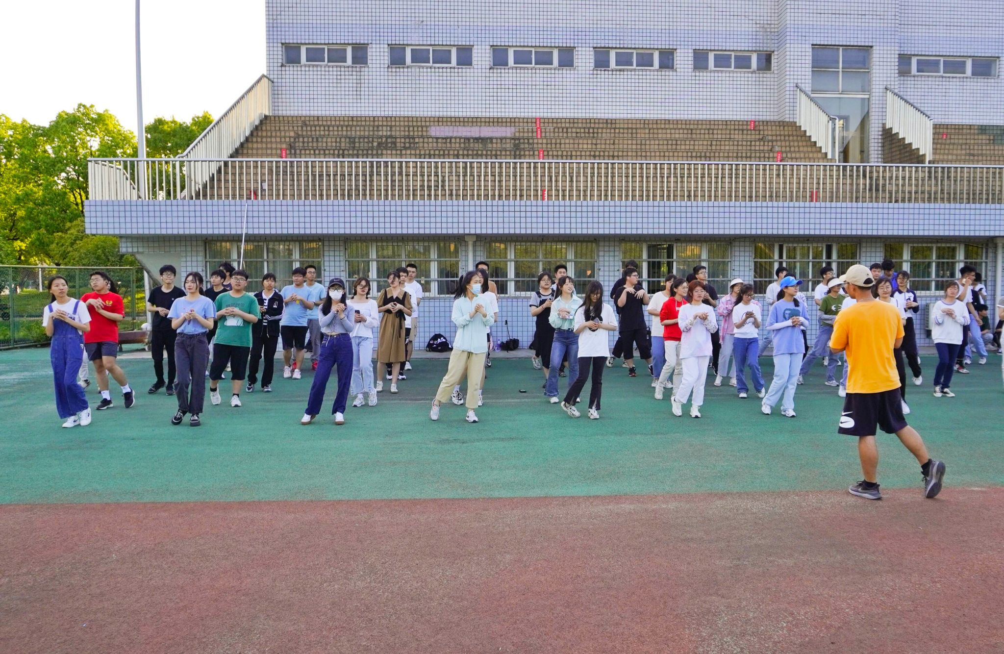 “大家跟着我做体转运动,两脚分开与肩同宽站立,两手屈臂握拳与肩同高……”下午5点,员工们在操场集合后,集中完成热身运动。物理学专业2021(4)班的周浩天作为旗手,肩扛公司旗帜领跑在前,员工们整队排列,跟随其后。他们步履轻盈,双臂一前一后地摆动着,双脚越迈越快,部分员工表示“四圈不过瘾”,继续围绕操场跑第五圈、第六圈。