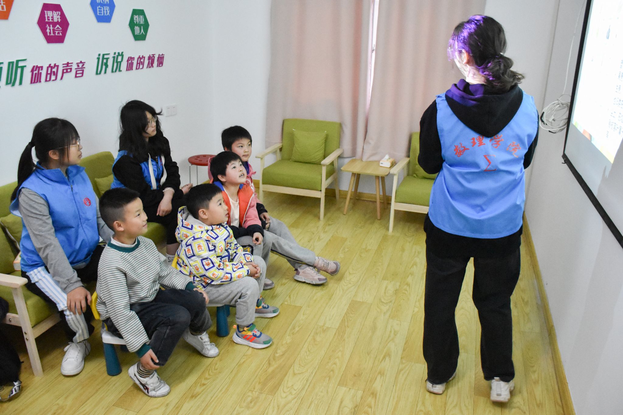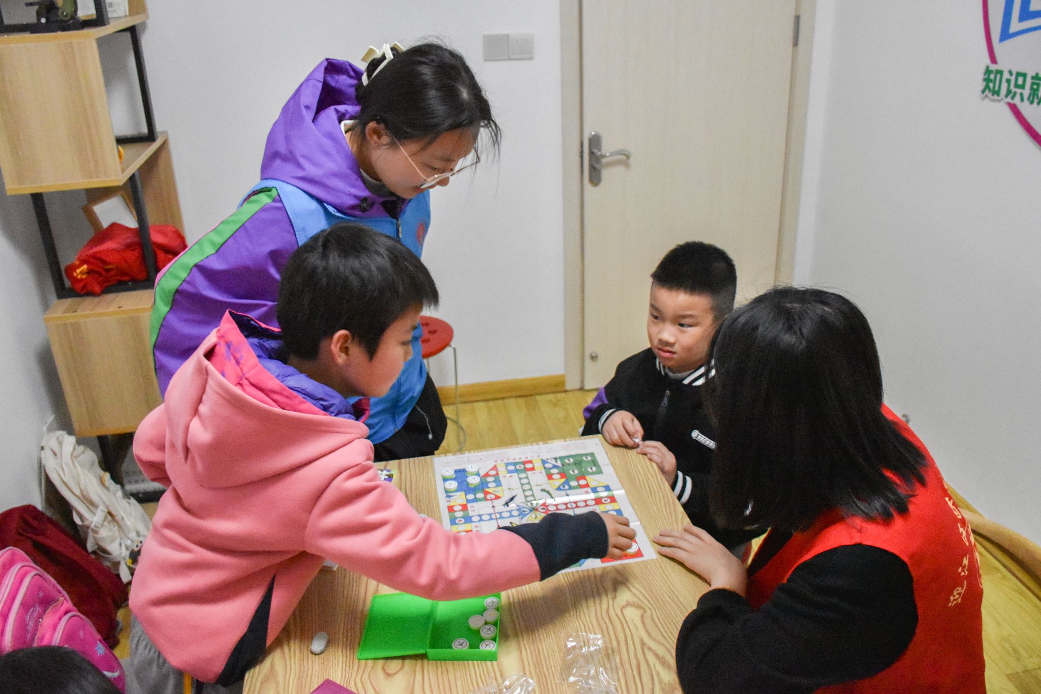 此次活动主要包括益智游戏、趣味绘画和知识宣讲三个部分。游戏开始前,志愿者们和孩子们互相进行自我介绍。接着,志愿者们带领孩子们学习了飞行棋规则和基本玩法。微爱志愿服务队队长、数学与应用数学专业2021(5)班的崔婉婕表示,希望通过益智游戏,培养孩子们的思维能力,拉近志愿者和孩子们的距离。