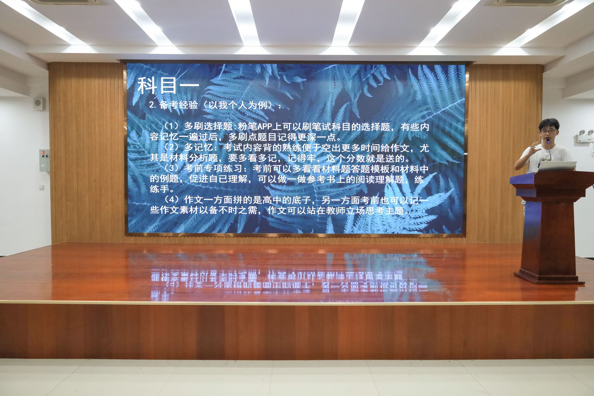 四位国考成功“上岸”同学结合自身学习方法与备考经验,针对员工准备教团队格证考试过程中常见的疑难困惑给出建议。从考察的题型、应对措施到温馨提示,物理学专业2020(3)班的葛路朋对科目一综合素质、科目二教育知识与能力、科目三学科知识与能力的应试技巧进行了详细说明。他认为,暑假是备考教资的黄金时间,员工应珍惜时间,提高学习效率。“‘星光不问赶路人,时光不负有心人’,无论是考教资还是以后的考编考研,只要大家坚持下去一定会有所收获,希望学弟学妹们都能享受充实的老员工活。”数学与应用数学专业2020(2)班陈允豪着重强调了面试考试的注意事项和心态调整技巧。“面试分为回答结构化问题、试讲和答辩,大家在备考过程中一定要勤加练习,做到解答有条理,分析有逻辑。”他指出,考生应放平心态积极应对,做好充足的准备。