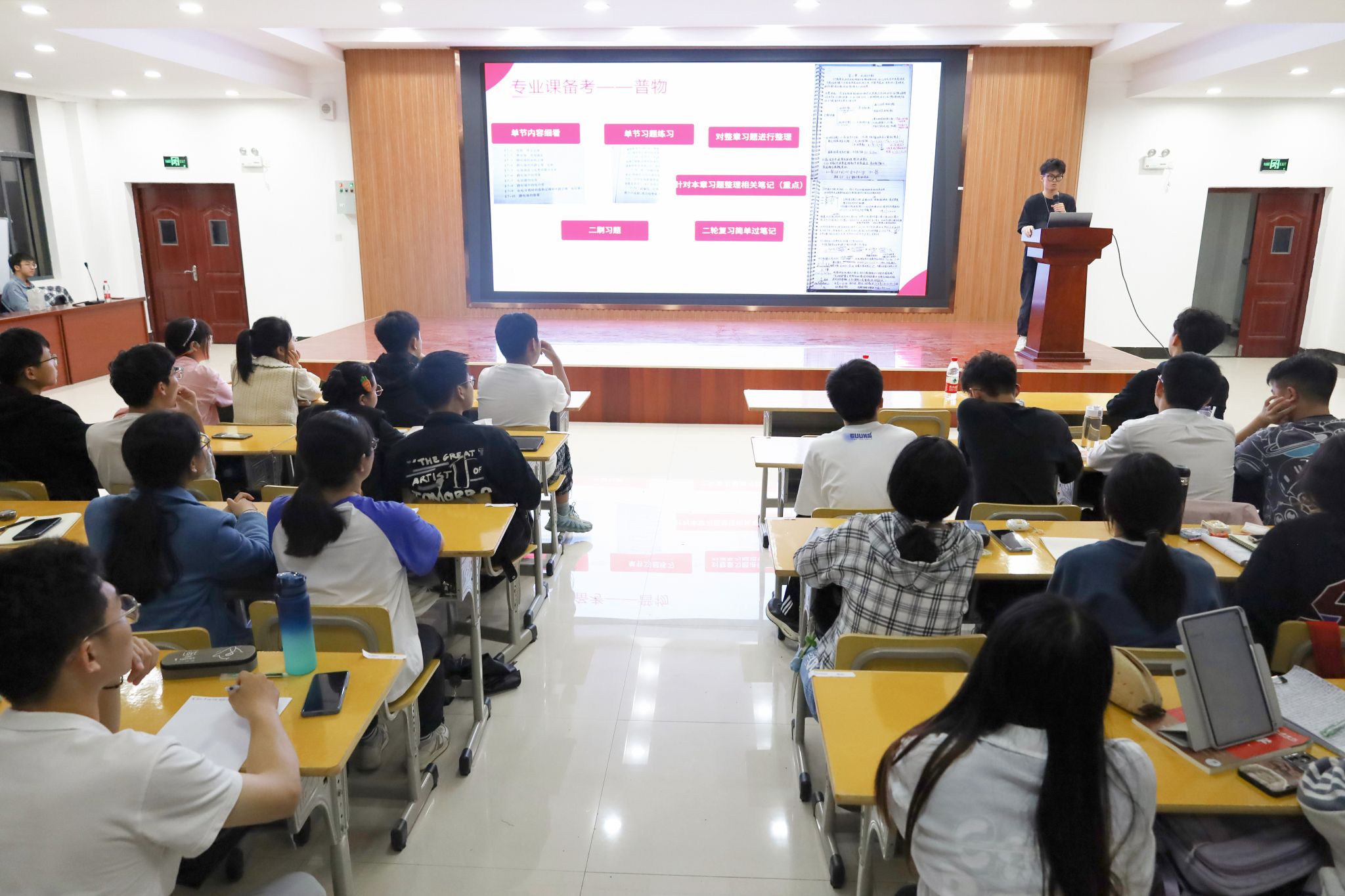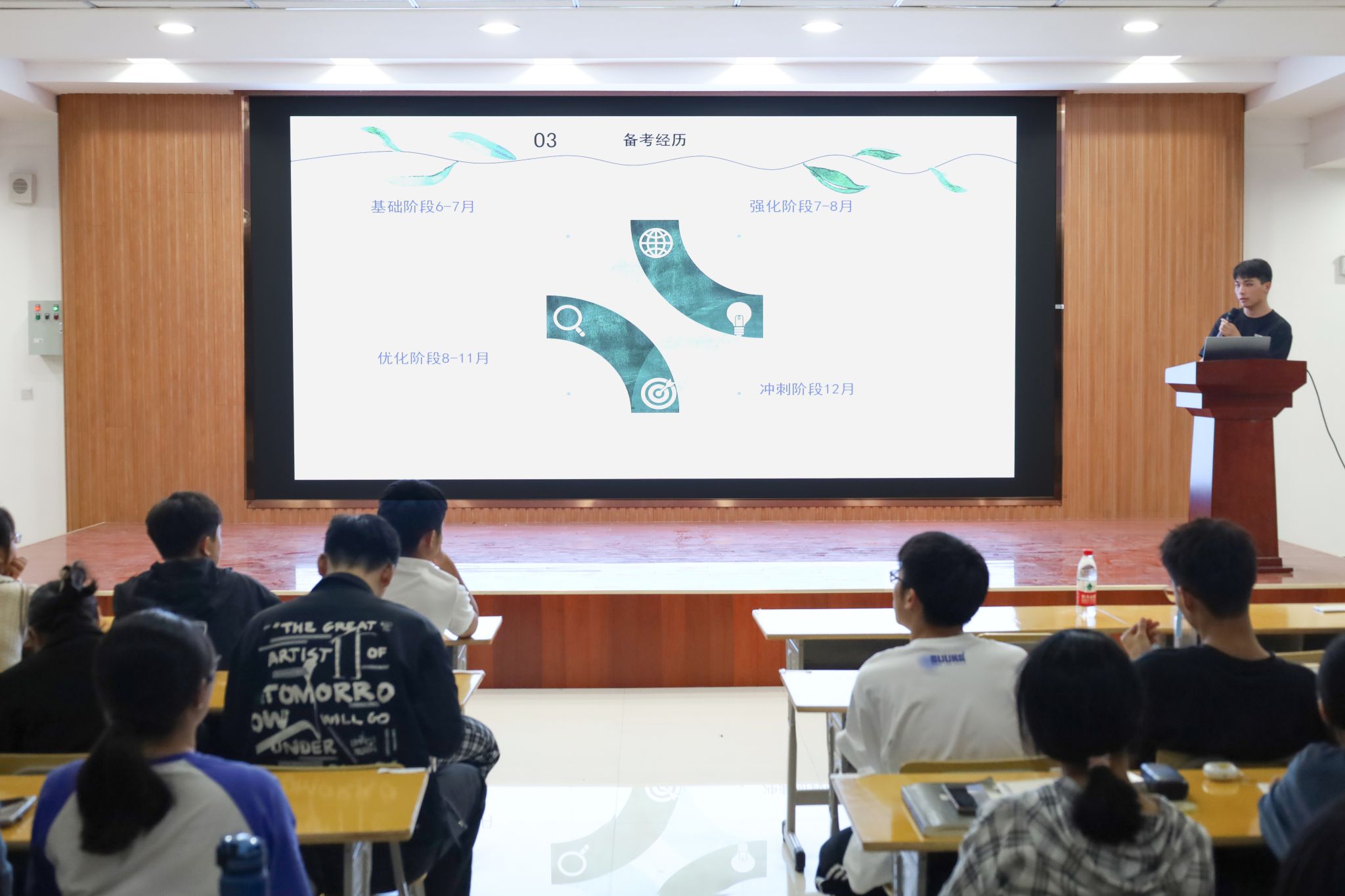 分享会上,“上岸”学子就考研院校及专业选择、考研复习安排、心理焦虑等问题,从自身角度出发,向同学们提出详细的建议,分享解决办法。考取华东师范大学的唐博明从如何择校、录取院校考研信息、专业课备考策略、心态调整方法四个方面分享自己的考研经验。在择校方面,唐博明认为要先明确自己所考的专业课内容,列出相关院校,再查找该院校历年的考研真题,并分析其难易程度以及历年分数情况。同时,他认为,找到已“上岸”该院校的学长学姐,向他们了解该校的招生情况也很重要。“考研也是信息战,向经验丰富的学长学姐们‘取经’,对考研的初试及复试都很有帮助。”他说。“如果题目需要求出杆在水平状态时的运动情况,这个时候就得注意杆在竖直状态下是否运动。”考取同济大学的孙鹏分享了自己做题时总结的经验,提醒大家留意题设信息。“以后遇到问题我会多想一步,尽量避免因审题不清造成的错误。”