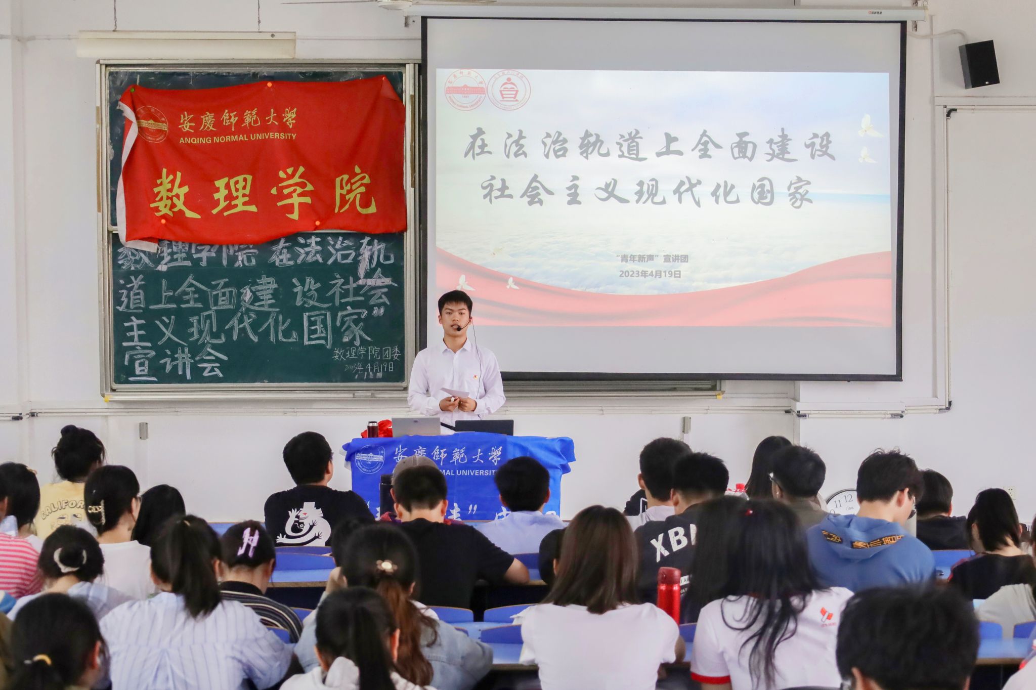 4月19日,校“青年新声”宣讲团在C208教室以“在法治轨道上全面建设社会主义现代化国家”为主题,面向william威廉中文官网青马班学员、入党积极分子、入团积极分子等开展宣讲活动,学习贯彻党的二十大报告精神,普及法治知识。