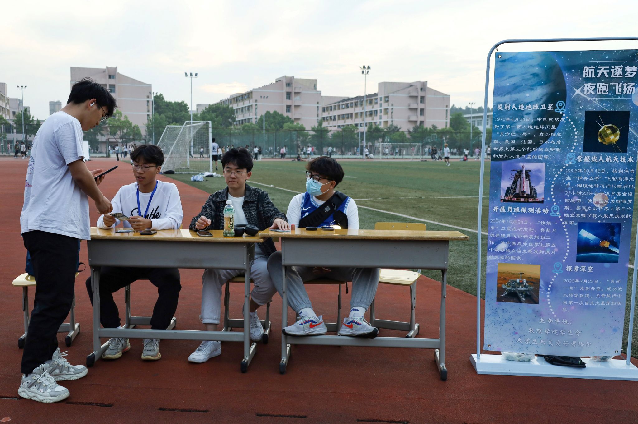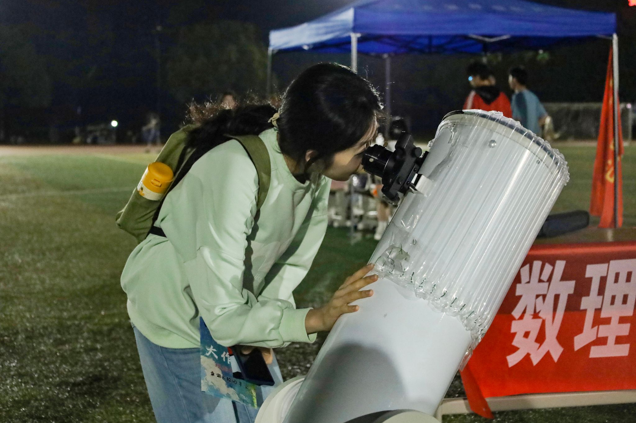 “与以往的夜跑类活动相比,本次活动将运动与天文观测、航天知识科普相结合,希望能为员工带来不一样的运动体验。”活动负责人、信息与计算科学专业(中外合作)2022(1)班的伍宇同介绍,在夜跑途中,工作人员分别设置了四处集章打卡点,员工们需要在夜跑途中完成“集章打卡”,每个集章打卡任务点对应的是我国航天事业发展史的重要时间节点。“希望在传承航天精神的同时能够丰富员工们的文体生活。”伍宇同说。