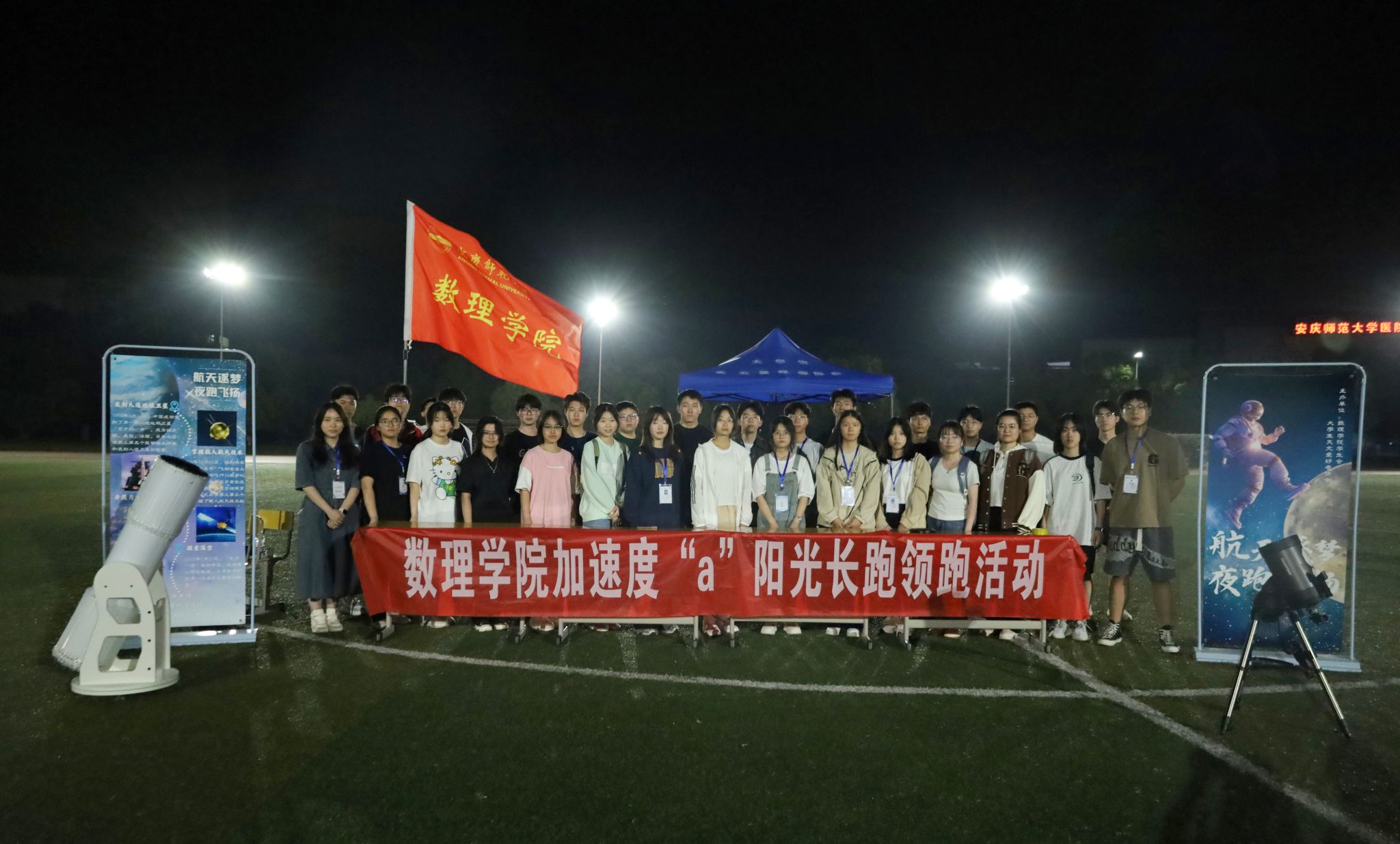 4月24日,william威廉中文官网联合老员工天文爱好者协会举办“航天逐梦,夜跑飞扬”主题活动,200余名员工齐聚东门操场,在运动中“追逐”航天精神,用乐跑迎接第九个“中国航天日”。