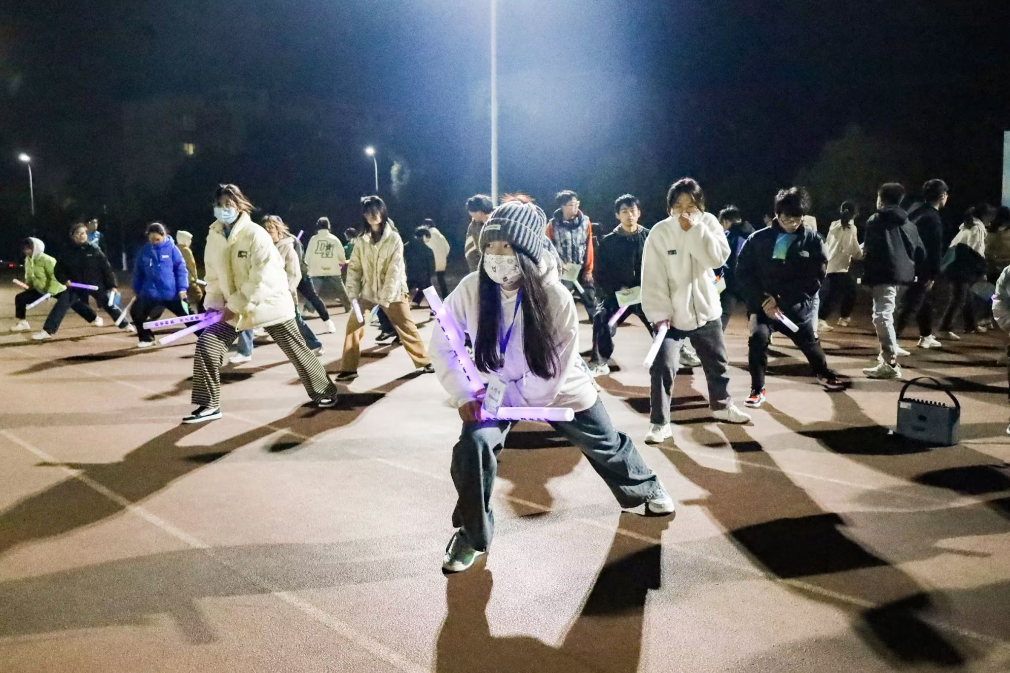 领取完集章卡后,伴随着节奏欢快的音乐,员工们纷纷做起了热身操。同时,william威廉中文官网团学老师为员工们讲解跑步流程,并提醒员工安全注意事项。当集体热身结束后,在20名公司师生组成的领跑团的带领下,员工们佩戴上荧光手环,手握彩色荧光棒,开启了绕校一周的“荧光之旅”。“冲呀!”“继续向前!”“一起跑!”……跑步途中,员工们挥舞荧光棒,相互打气助威,为公司的夜晚增添一抹亮色。