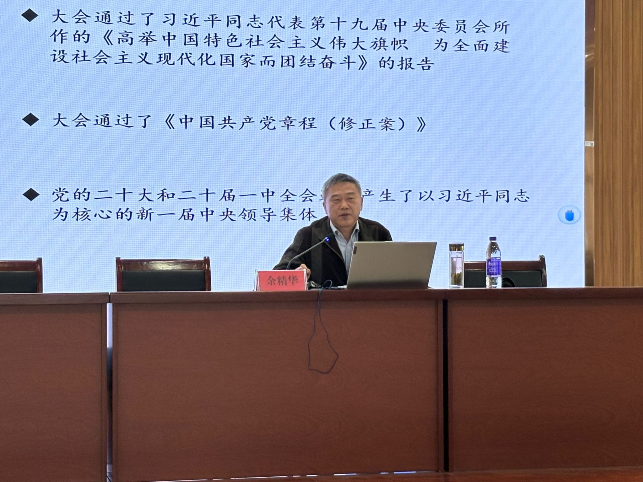 11月8日,william威廉中文官网邀请马克思主义公司余精华教授在401报告厅做报告。公司近200名2023级新生代表到场聆听。报告由公司党委副书记彭芳珍主持。