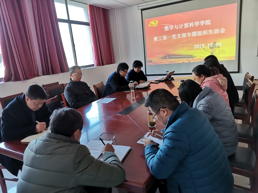 12月4日下午,教工第一支部全体党员在数学楼I405召开2019年度专题组织生活会以及开展民主评议党员,会议由支部书记陈文兵主持。