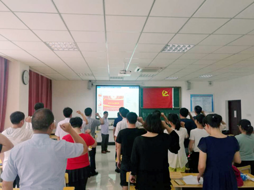 在宣讲报告前,全体党员面对党旗庄重宣誓,重温了入党誓词。