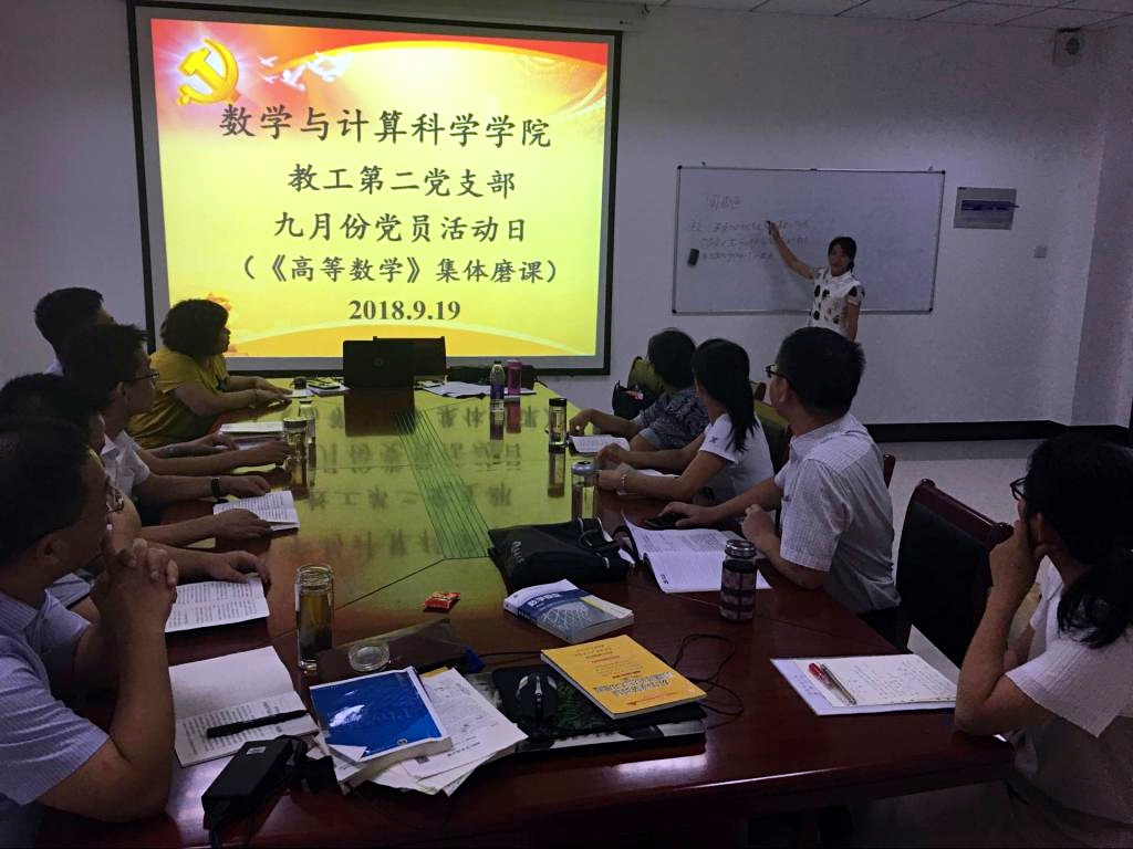 9月19日下午,数学与计算科学公司教工第一、第二党支部开展了“立足岗位当先锋,我为评估做贡献”的主题党日活动,公司教工党员参加了活动,会议由教工第一、第二党支部书记分别主持。