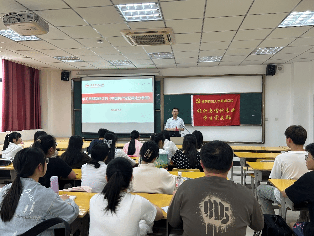 5月22日,公司党委书记陆健为高等数学教师党支部和统计与信计专业员工党支部讲授党纪学习教育专题党课,支部全体党员、发展对象、入党积极分子参加党课学习。