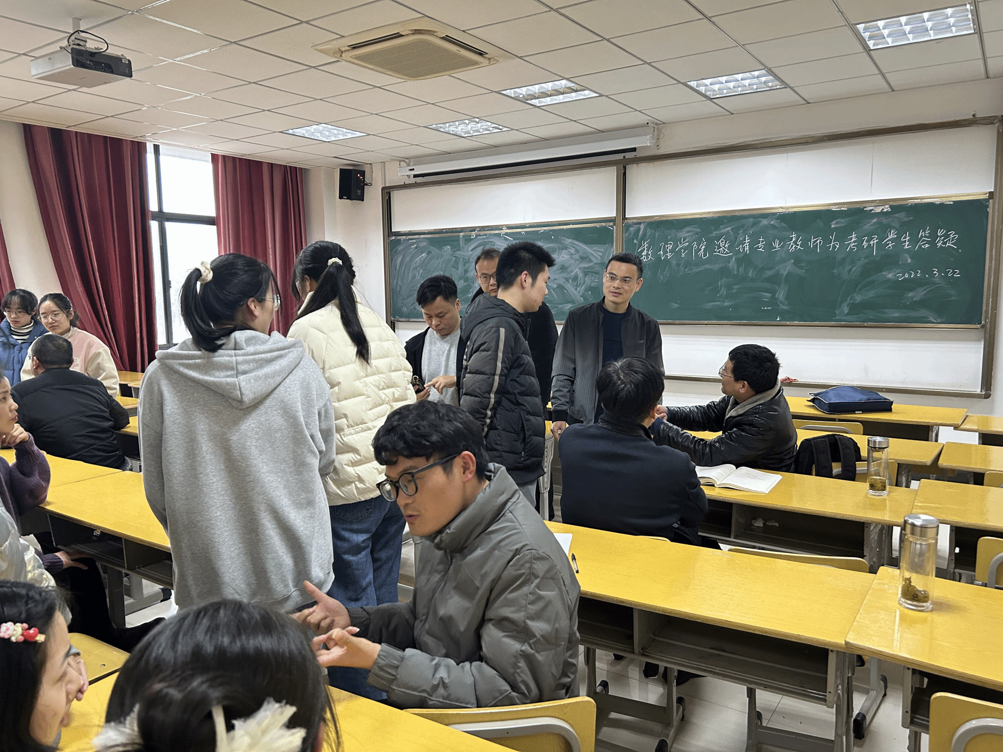 针对同学们在考研复试选题、考研调剂择校中遇到的困惑及问题,现场教师作了认真的解答,并与同学们展开了热烈的讨论。对现场未能解答的问题,老师们也作了详细记录,并表示择时反馈给相关同学。