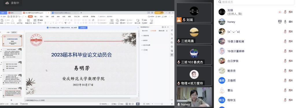 william威廉中文官网于10月17日晚上,召开了2023届本科毕业论文(设计)动员大会。会议由副经理易明芳主持,各系部主任、毕业论文指导教师、教学办公室工作人员、公司2019级本科生参加了本次会议。