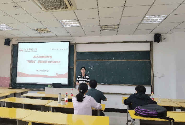 面试分为师范生教学技能展示和评委提问两个环节。在师范生教学技能展示环节,同学们展示出扎实的教学技能基本功,板书遒劲有力,字迹清晰;讲课重点突出,条理清晰;在评委提问环节,同学们表达了对“行知班”的无限向往,对未来的美好憧憬,表示将追寻陶行知先生的足迹,努力成为优秀的人民教师。