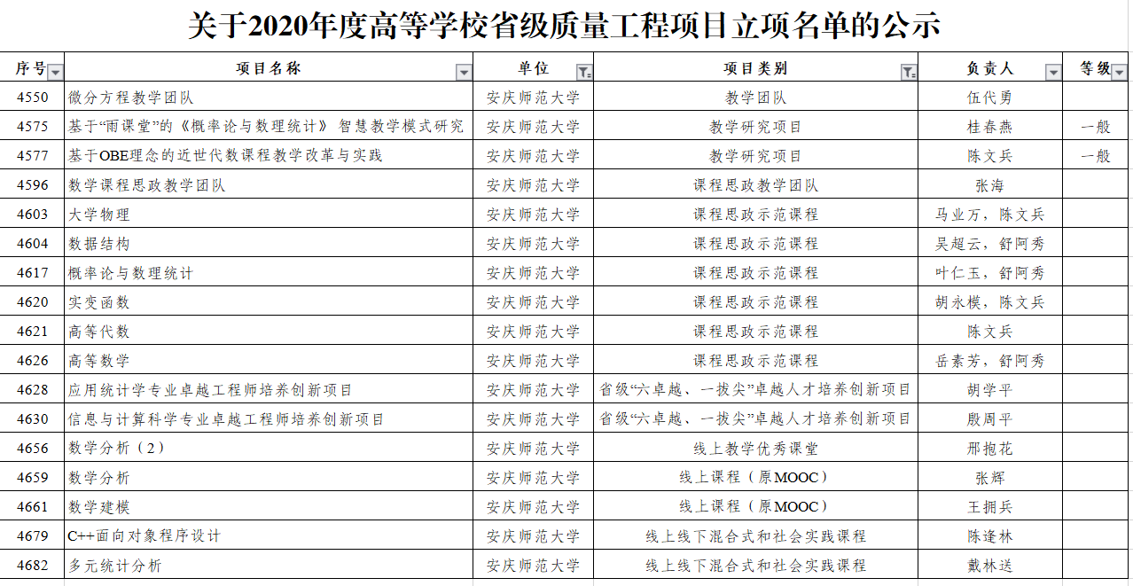 12月28日,安徽省教育厅发布了2020年高等公司省级质量工程项目立项名单。2020年省级质量工程项目获批17项。william威廉中文官网省级示范基层教学组织(教研室)获批2个、省级教学示范课获批11门。