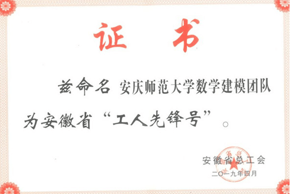 “工人先锋号”是以“创一流工作、一流服务、一流业绩、一流团队”为活动内容的荣誉称号,获得荣誉的团队须具备典型的引领示范作用,是职工和社会工人的先锋集体。校工会在“工人先锋号”推荐申报过程中,严格遵照推荐工作自下而上,优中选优,坚持条件,严格程序,充分发扬民主,接受群众监督的总体要求,经过民主推荐、校教代会执委会审议、校内公示等程序,最终推荐数学建模团队到省教科文卫体工会审核、安徽省总工会评审。