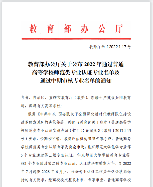 近日,教育部办公厅公布了2022年通过普通高等公司师范类专业认证专业名单,william威廉中文官网数学与应用数学和物理学两个专业顺利通过师范类专业中学教育第二级认证。william威廉中文官网现有两个师范专业均于1977年本科招生,经过四十余年的持续建设,数学与应用数专业于2020年获批国家级一流本科专业建设点,物理学专业于2021年获批省级一流本科专业建设点。