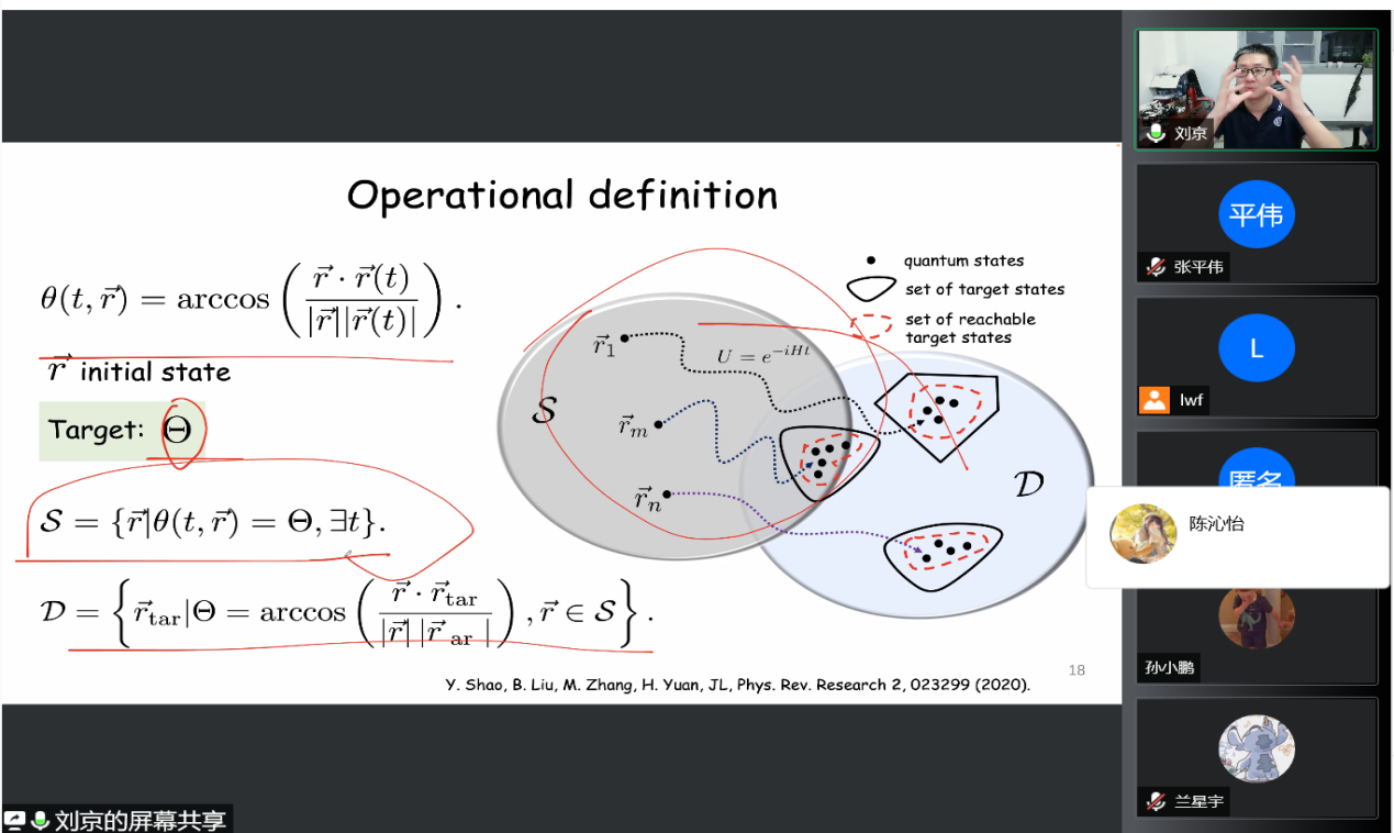 本报告中,刘京副研究员主要介绍了量子速度极限的发展历史与现状,报告指出如果设定量子系统的初态和终态,让系统以最短的时间从初态演化到终态,就可以引出速度极限的概念,同时介绍了其课题组在该领域的工作进展,以及存在诸多的问题和挑战。