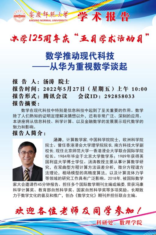 中国科公司院士汤涛教授线上学术报告通知2022007