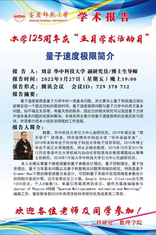 华中科技大学博士生导师刘京副研究员学术报告通知2022011