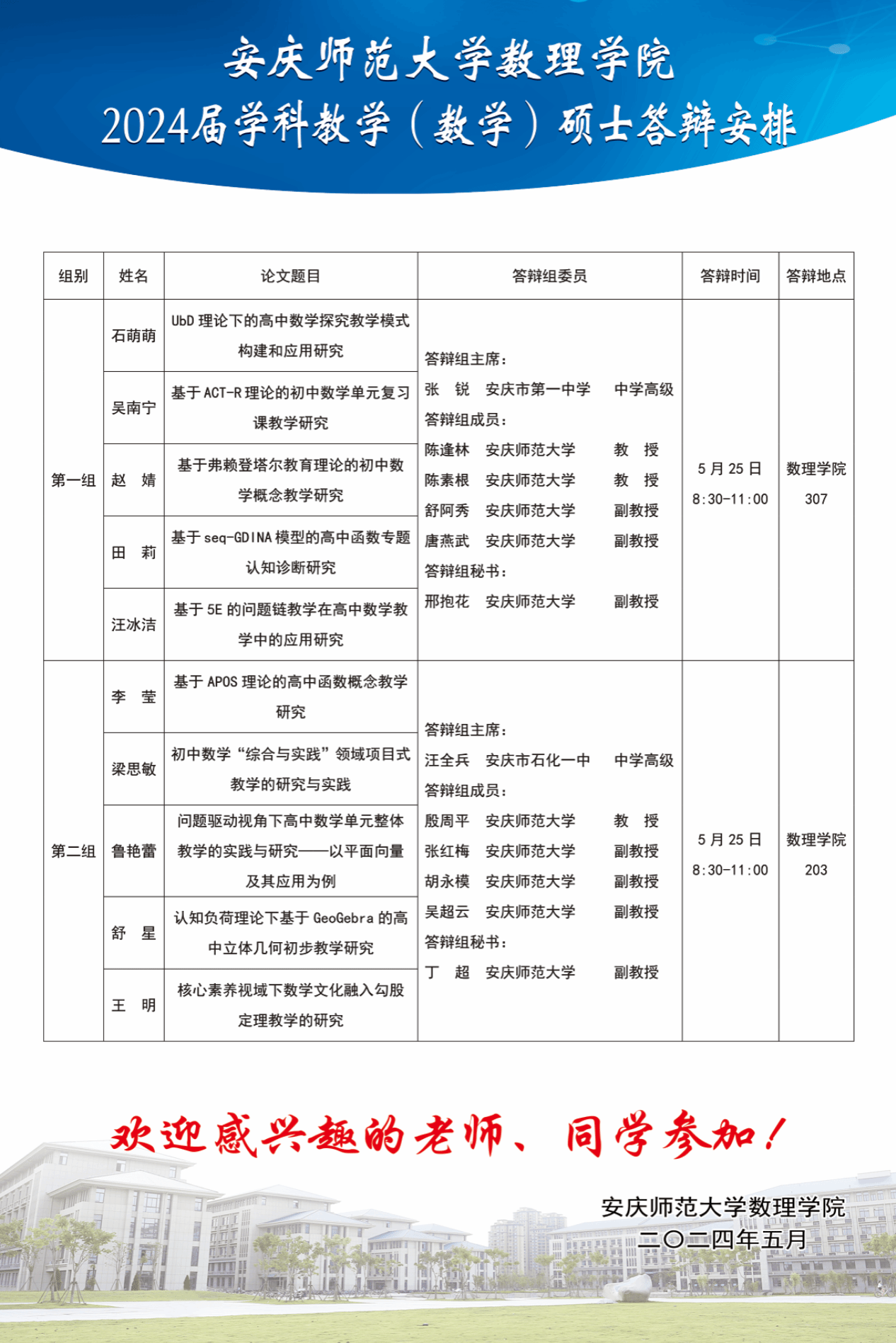 2024届学科教学(数学)硕士研究生学位论文答辩安排
