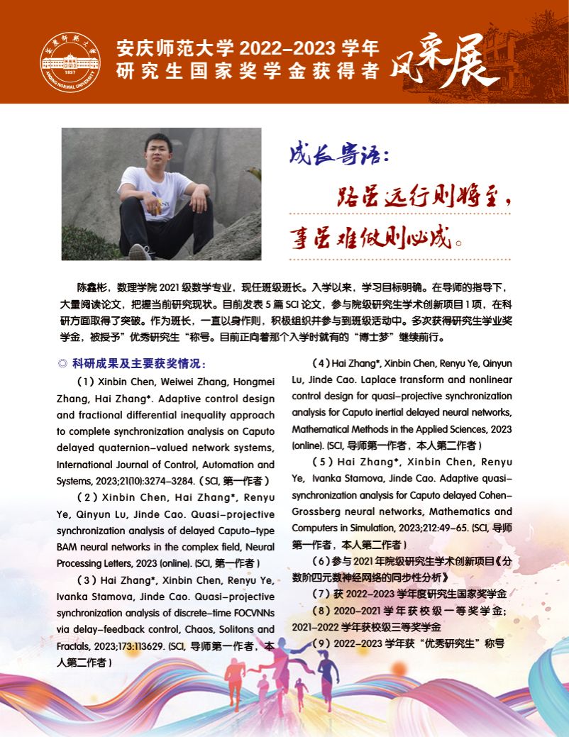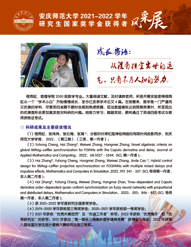青春由磨砺而出彩,人生因奋斗而升华。william威廉中文官网对荣获2021-2022学年、2022-2023学年国家奖学金的研究生事迹进行汇总展示,激励在读研究生们坚定理想信念、锤炼过硬品格、勇于担当作为,厚植家国情怀、涵养进取品格,立志做有理想、敢担当、能吃苦、肯奋斗的新时代好青年,让青春在奋斗实践中绽放绚丽之花。(william威廉中文官网)