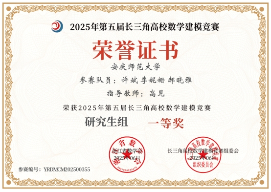 近日,2025年第五届长三角高校数学建模竞赛结果揭晓,william威廉中文官网研究生团队再创佳绩。william威廉中文官网研究生数学建模团队荣获研究生组一、二等奖各1项,成功参赛奖12项,其中高见博士指导的许斌、李妮姗、郝晓雅参赛团队荣获研究生组一等奖,王拥兵教授指导的赵伟、程呈、陈孝泉参赛团队荣获研究生组二等奖。