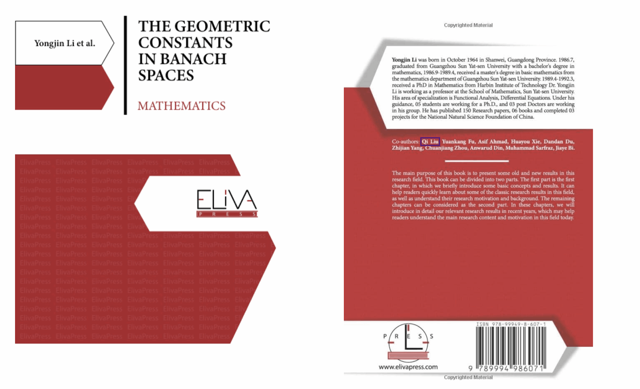 Yongjin Li, Qi Liu et al. The Geometric Constants in Banach Spaces. Eliva Press. ISBN: 978-9994986071, 2023.