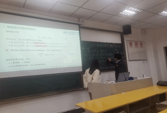 磨课现场,冯苗和杨婷两位青教师分别就“常微分方程”和“实变函数”课程的相关章节进行了不同方式的现场模拟教学。胡永模、张辉、马宗立和张玮玮等老师从课程思政元素的融入、教学环节的设计、教学思路的改进和教学内容的侧重点等维度,开展点评、进行教学经验分享与交流。