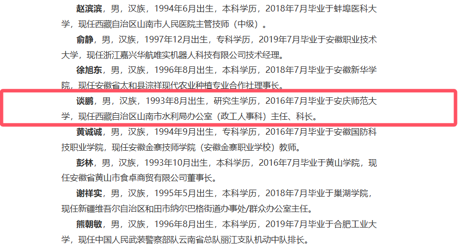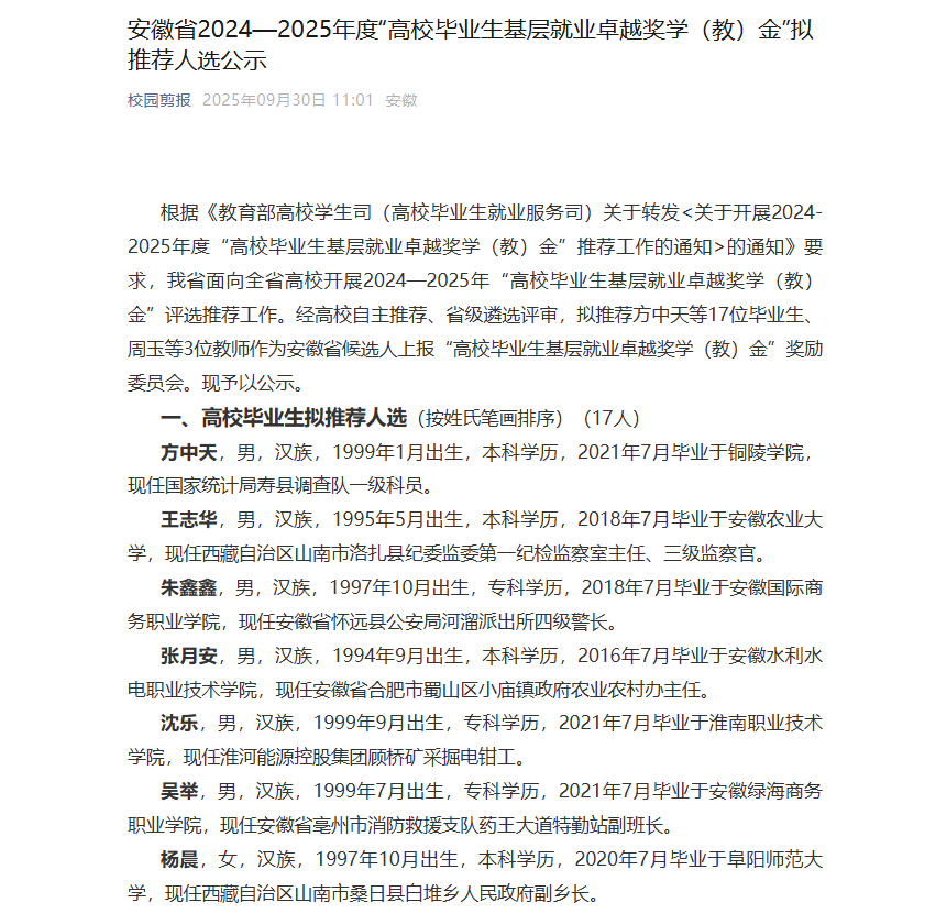 2016届毕业生谈鹏荣获安徽省2024—2025年度“高校毕业生基层就业卓越奖学(教)金”拟推荐人选